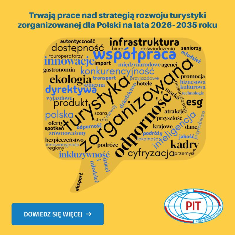 Na zlecenie Ministerstwa Sportu i Turystyki, Polska Izba Turystyki wraz z zespołem ekspertów prowadzi prace nad pierwszą w Polsce strategią rozwoju turystyki zorganizowanej. Dokument ma wyznaczyć kierunki działań dla branży obejmującej turystykę krajową, przyjazdową i wyjazdową.